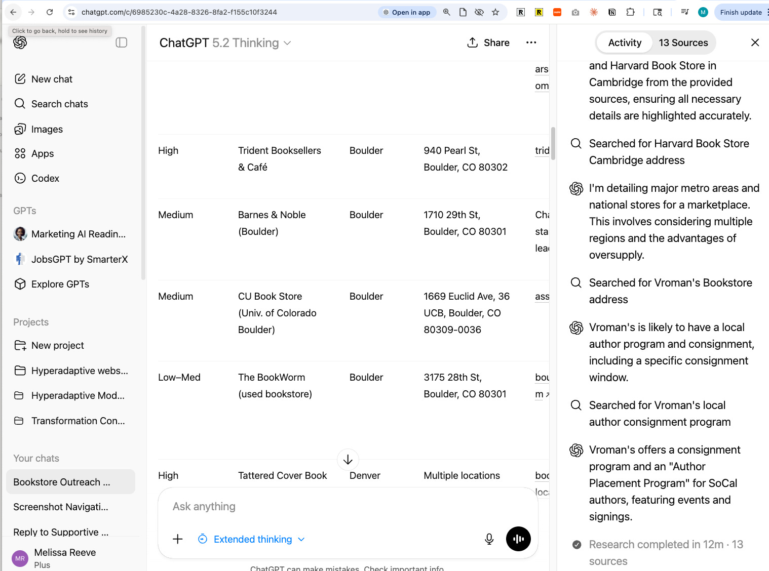 While Claude Code is doing its thing, a browser agent is scouring the web for independent bookstores in the Denver-Boulder metro area. But it’s not just listing them, it is: