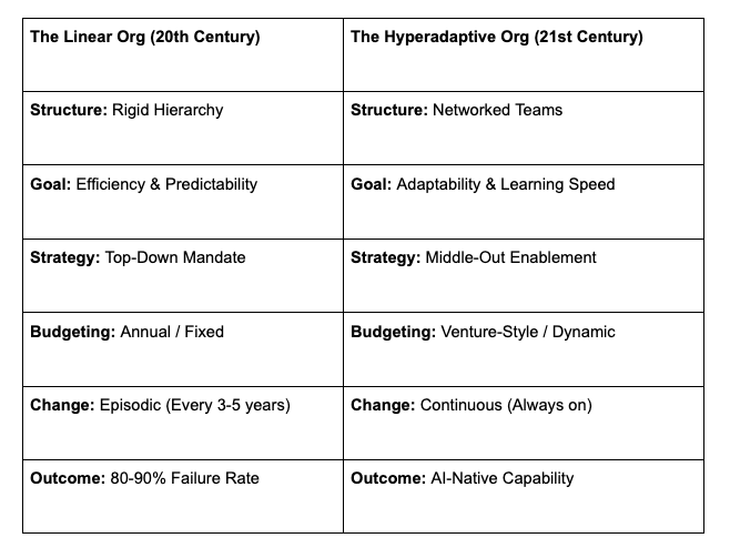 In my upcoming book, Hyperadaptive: Rewiring the Enterprise to Become AI Native, I provide the complete blueprint, including: